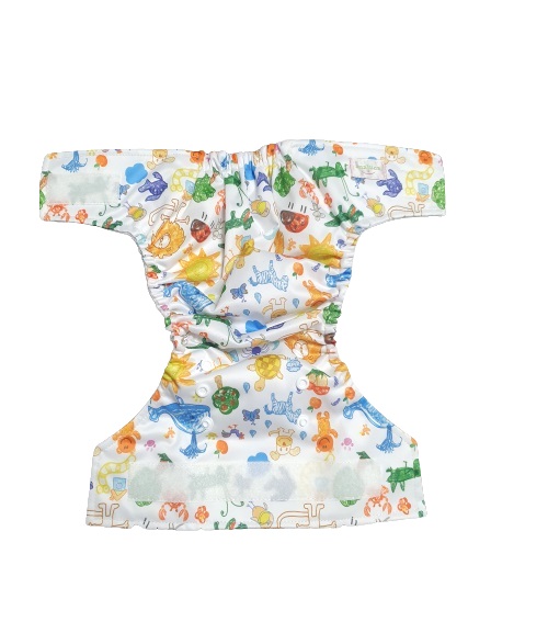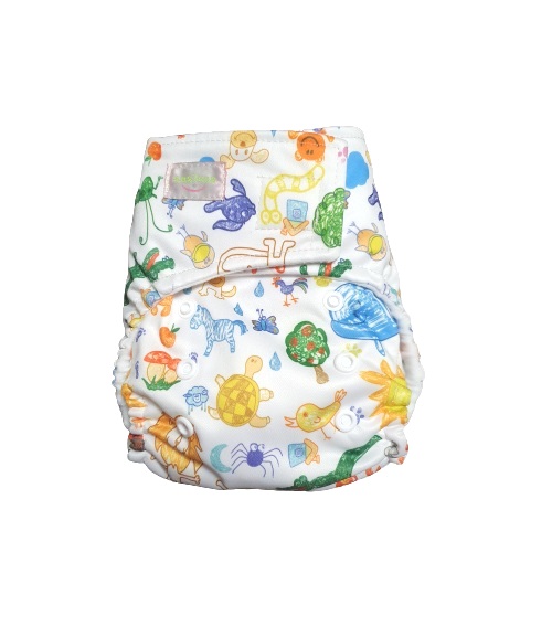 Interiorul este din material stay dry cu elastic dublu, pentru e retine mai usor scaunele moi ale bebelusilor micuti. Exteriorul scutecului este confectionat din material impermeabil de tip PUL, peliculizat