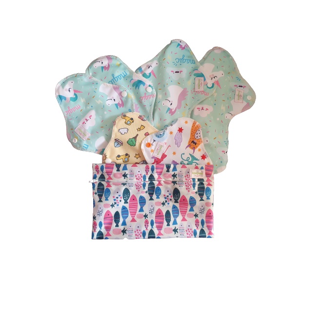 Acest set de absorbante intime refolosibile ANALUCA, contine 6 bucati absorbante plus un saculet impermeabil, cate 2 bucataidin urmatoarele variante: mic cu stay dry in contact cu pielea, mediu si mare cu fleece de canepa si stay dry in contact cu pielea