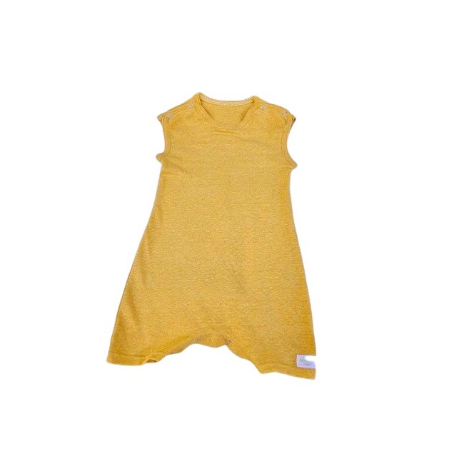 Salopeta din tricot de canepa si bumbac organic galben mustar - marime 98/104